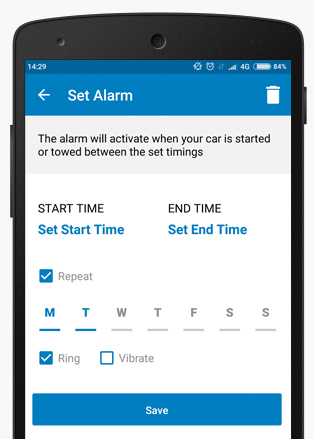 You can set up an alarm that notifies you in the event of your car being towed away or an attempt made to start the car.