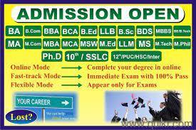 7th Block, Bangalore PremiumGolden Opportunity for the Employees & Dropouts" Complete any Degree/Diploma UGC-DEC-AICTE approved Universities (Valid for all Pvt/Govt. ) Complete Your BA, B.Com, B.Sc, B.SC(IT/CS), MA, M.Com, M.Sc, M.Sc (IT/CS) BBA, BCA, MBA, MCA, B.Tech, M.Tech Diploma Engineering and many more courses Limited Seats for B.ED, LLB, P.HD, D pharmacy and B pharmacy with Registration *Good News for dropout Students can take admission * - Contact for 10th and 12th More Information Call & Discuss .8960640553 Fast Track # one Sitting # Back date Degree